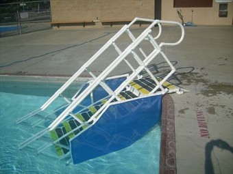 Easy To Install Pool Ramp See It Believe It Do It Watch Thousands Of Spinal Cord Injury Videos At Spinalpedia Com Access Ramp Swimming Pools Wheelchair